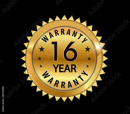 Fototapeta premium golden metallic 16 year warranty badge - vector eps10
