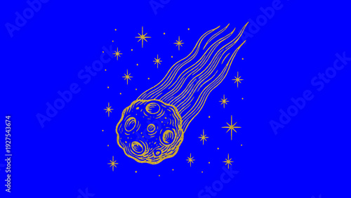 © Rawpixel.com, Fototapeta premium Golden meteor illustration on blue