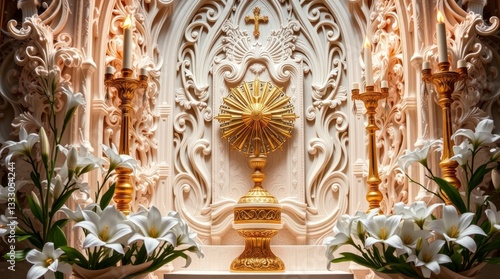 © BONDET LUCKY, Fototapeta premium Golden Monstrance Altar Catholic Church Religious Image