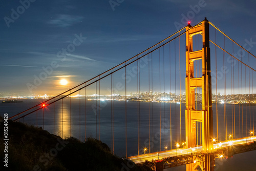 © Mohammed, Fototapeta premium Golden moon rise on the golden gate