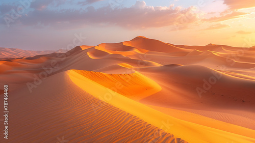 Naklejka premium Golden morning light casts long shadows across the undulating sand dunes of...