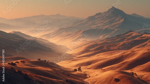 © Melati, Fototapeta premium Golden mountain valley at sunrise