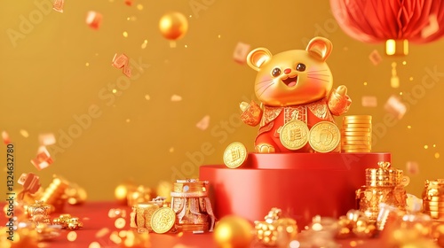 Fototapeta premium Golden Mouse Chinese New Year Celebration