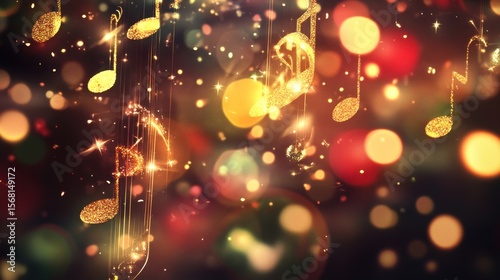 Obraz premium Golden Musical Notes Falling, Festive Background