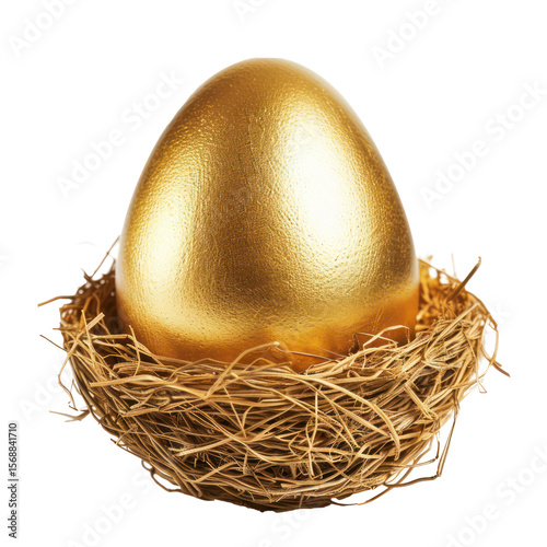© SOEM, Fototapeta premium golden nest egg side view isolate on transparency background