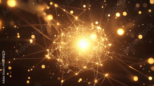 © fledermausstudio, Obraz premium Golden Network Sphere Abstract Technology Background