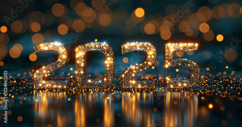 Obraz premium Golden 2025 New Year Celebration Sparkling Lights