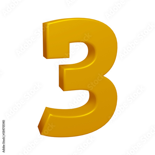 © Graphicyano8, Naklejka premium Golden number 3 in 3d rendering for math, business and education concept