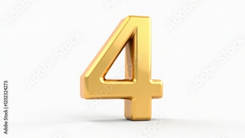 © OLGA RA, Obraz premium Golden number 4 on a white background.