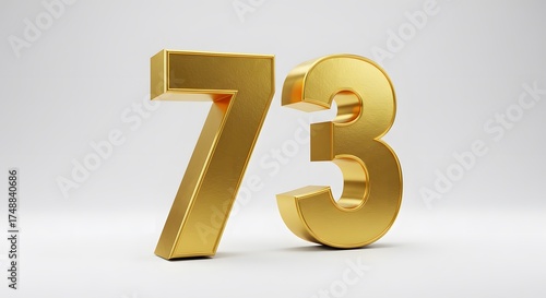 © Muchlis Nugroho, Fototapeta premium Golden Number Seventy Three Three Dimensional Figures on White Background