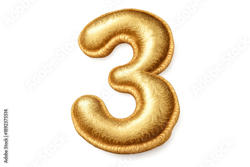 © PerfectPhoto, Naklejka premium Golden number three foil balloon on a transparent background