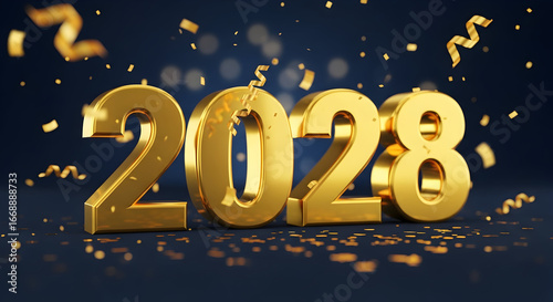 Naklejka premium Golden 2028 Numerals Celebrate Upcoming New Year on Festive Background