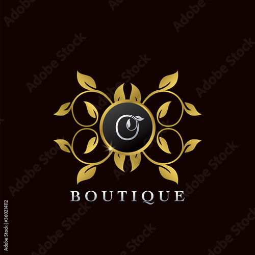 Fototapeta premium Golden O Letter Luxury Frame Boutique Initial Logo Icon, Elegance logo letter...