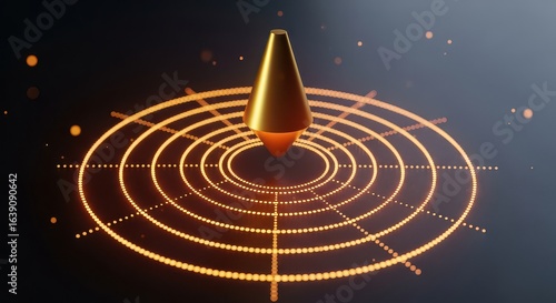 Obraz premium Golden Object on Glowing Dot Grid Background