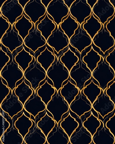 Fototapeta premium Golden ogee pattern forming a moroccan lattice design on black background