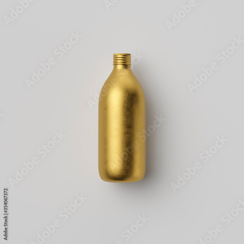 © Vladislav, Fototapeta premium Golden opaque bottle or flask on a white background, 3D rendering, web banner or template