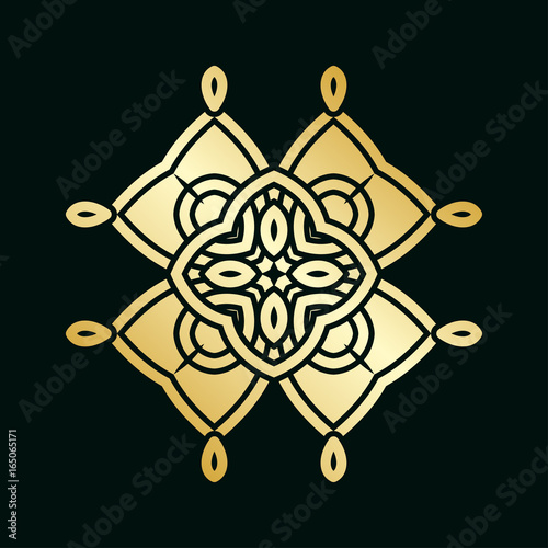 © Artstockstudia, Fototapeta premium Golden ornamental abstract vintage logo on dark background. Template for design
