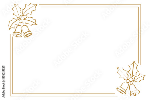 Obraz premium Golden Outline Christmas Bell and Holly Frame Festive Decoration Element