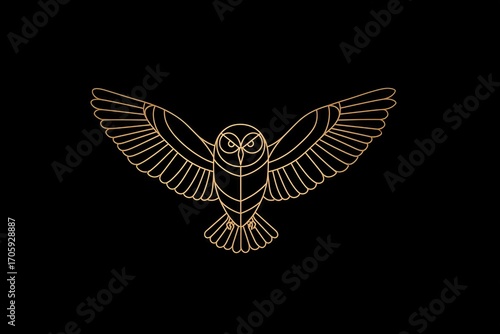 © Emil, Fototapeta premium Golden Owl Line Art with Spread Wings