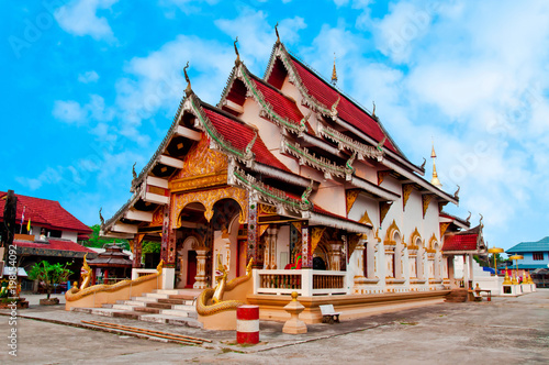 Fototapeta premium Golden Pagoda and Temple in Tha Wang Thong District, Phayao Province.