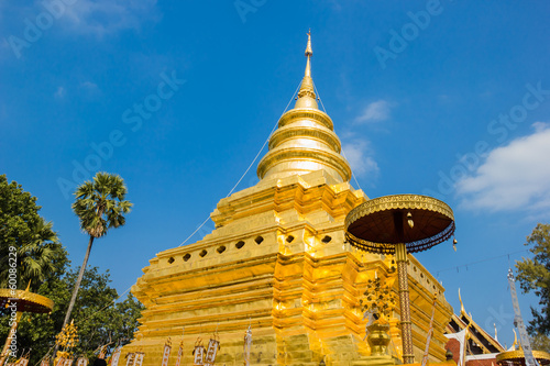 Fototapeta premium Golden Pagoda at Wat Phra That Sri Chom Thong, Thailand.
