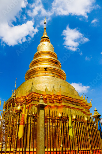 © ronnakon, Fototapeta premium golden pagoda in lamphun thailand