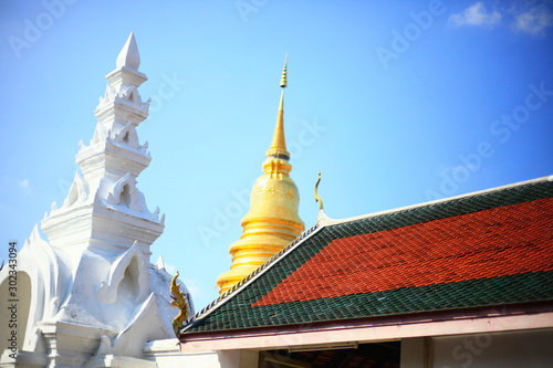© Panom, Fototapeta premium Golden pagoda with blue sky
