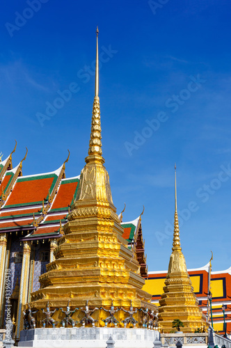 Fototapeta premium Golden pagoda with demon guardian at The Wat Phra Kaew or the temple of the...