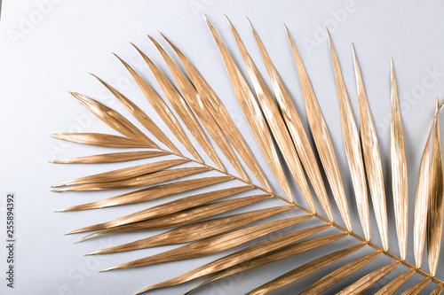 Obraz premium Golden palm leaf on light background