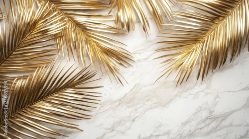 Obraz premium Golden Palm Leaves on Marble Background - Luxurious Tropical Design