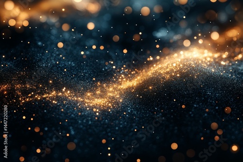 © sennauli, Obraz premium Golden particles flowing, dark background, abstract art, website design