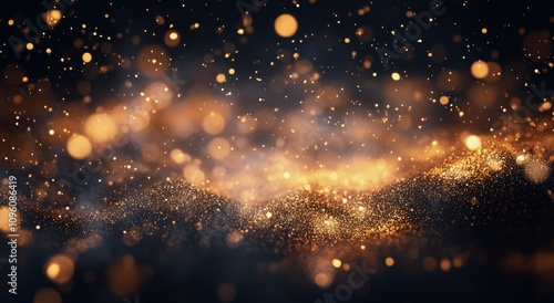 Obraz premium Golden particles shimmer in a dark environment creating an enchanting atmosphere