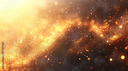 © ALIF JATI KUSUMA, Naklejka premium Golden particles swirl, bright background, abstract design