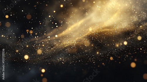 © Great, Fototapeta premium Golden particles swirl, dark background, celebratory design, abstract art