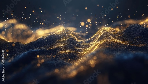 Naklejka premium Golden Particles Wave Abstract
