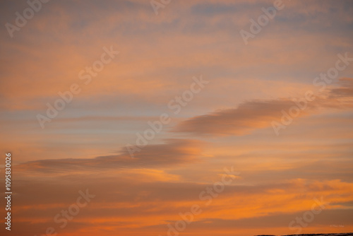 Fototapeta premium Golden pastel sunset clouds open sky Wild West