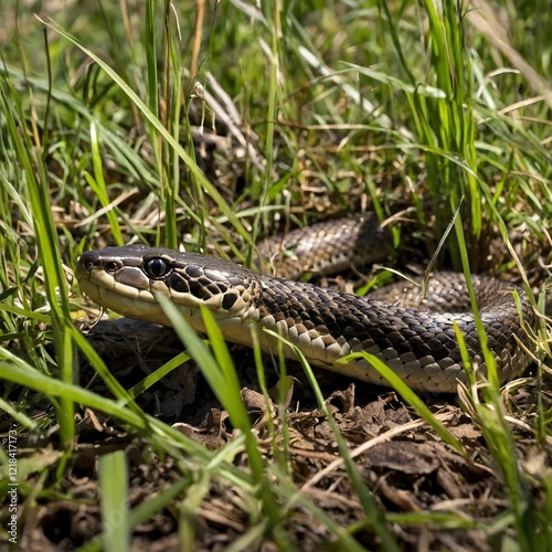 © AmuvitaGamage, Fototapeta premium Golden Path: Albany Adder Slithering in Sun-Dappled Grass