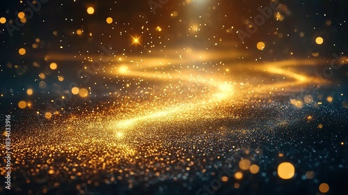 Obraz premium Golden Path Leading to Light with Glittering Particles and Bokeh Effects on Dark Background, Symbolic Abstract Design for Inspirational Themes