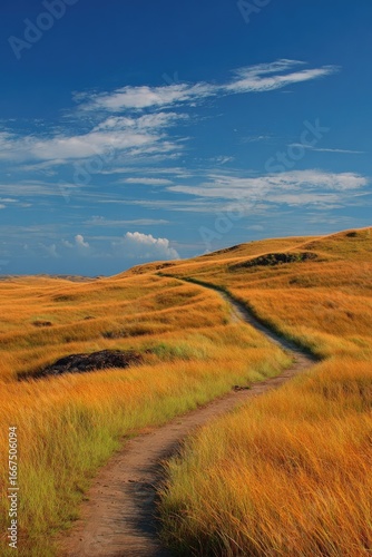 © anak, Fototapeta premium Golden path winding up a hill under a vibrant sky
