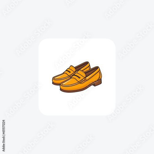 © Blinix Solutions, Fototapeta premium Golden Penny Loafer Moccasin Shoes and footwear Flat Color Icon set isolated on white background flat color vector illustration Pixel perfect