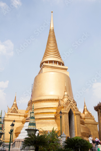 Naklejka premium Golden Phra Sri Rattana chedi building in Wat Phra Kaew temple within Grand...