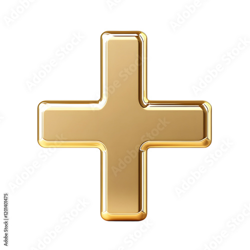 © Prasanth, Fototapeta premium Golden plus sign design on a white background