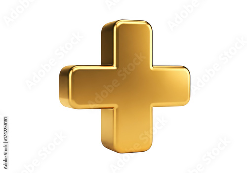© Jamilul, Obraz premium Golden plus sign isolated on transparent background