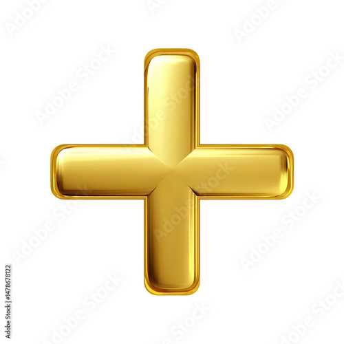 © Ouzhan, Obraz premium Golden plus sign symbol on white background
