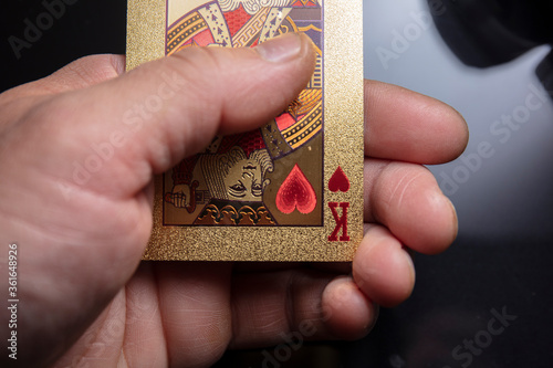 © SHELL, Fototapeta premium Golden poker card and gambling issue