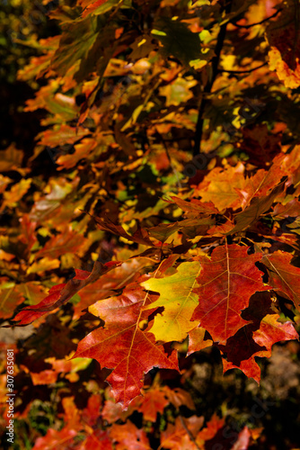 Fototapeta premium Golden Polish Autumn, maple oak leaves in forest, Poland October 2019