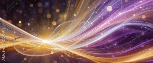 © Aufa, Fototapeta premium Golden Purple Abstract Light Waves Sparkling Bokeh Background