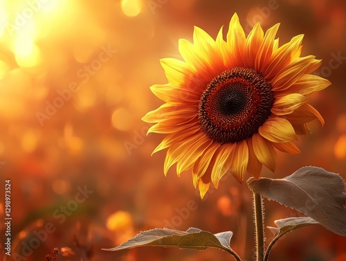 Naklejka premium Golden Radiance: A Sunflower's Bold Stand, Symbolizing Strength and Growth on...