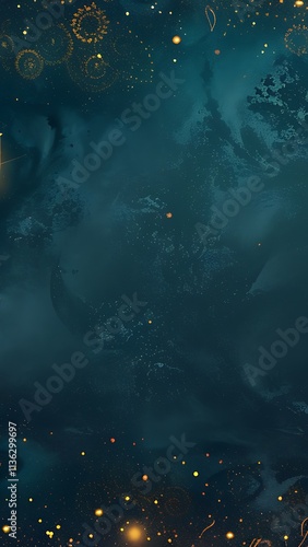 © Iman00, Fototapeta premium Golden Ramadan Background with Crescent Moon and Lanterns