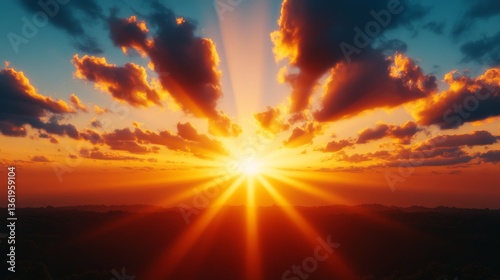 Fototapeta premium Golden rays of light dramatically breaking through dark clouds, crafting an...